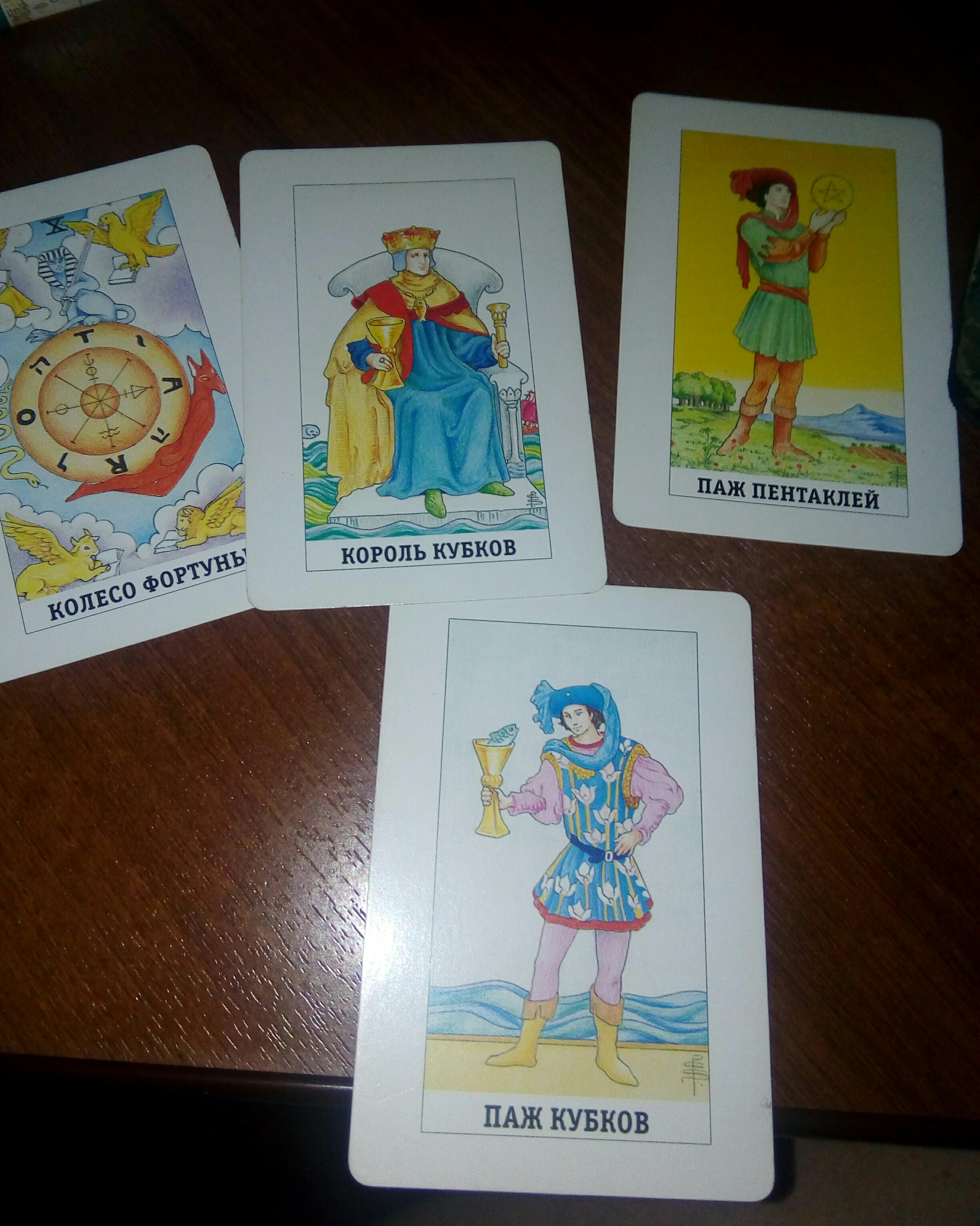 Жрец(императрица)5 м король ч итог луна(башня рыцарь ж)должна быть по картам м от жены сбегит на встречу,с какой то хитростью.