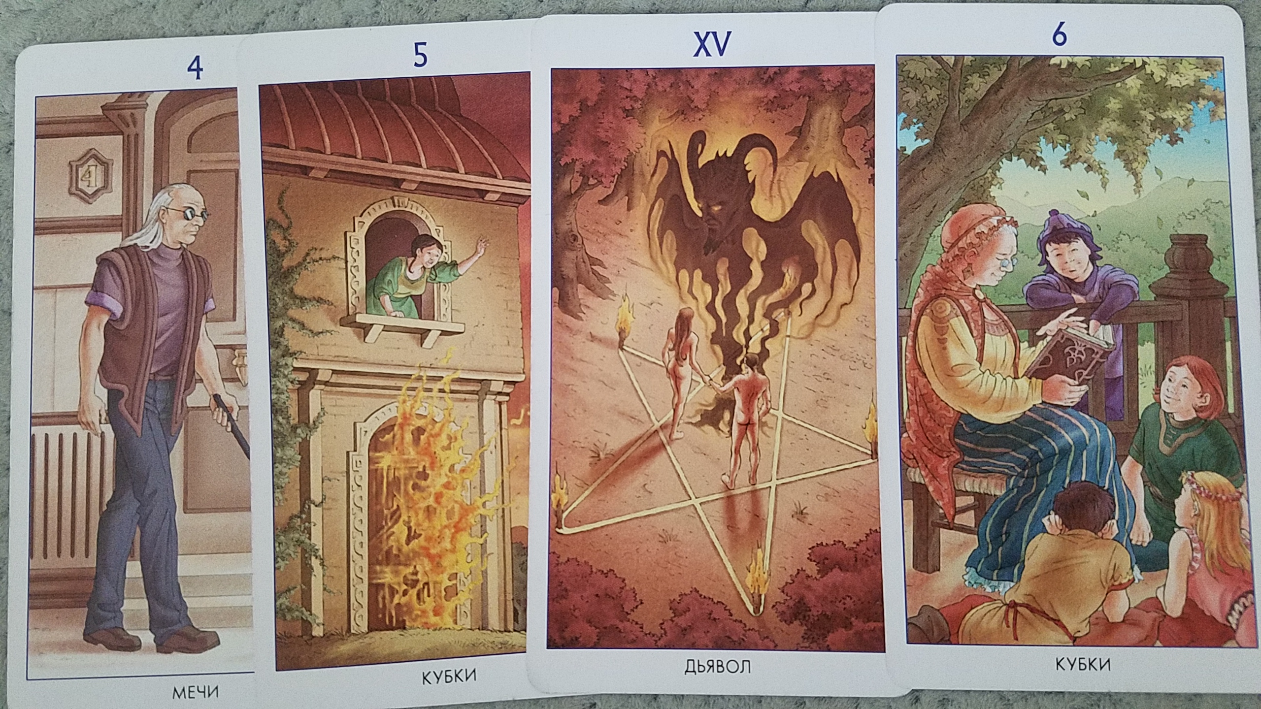 Вообще,указать бы вводную.Pythonisse писал(а): ↑07 июл 2018, 16:33Здравствуйте! Не знаю в каком разделе можно спросить, потому пишу тут. Скажите, пожалуйста, какой ответ будет верным на вопрос - что чувствует мужчина к женщине, если на Таро Уэйта: выпадает Императрица - Король мечей - Влюбленные,