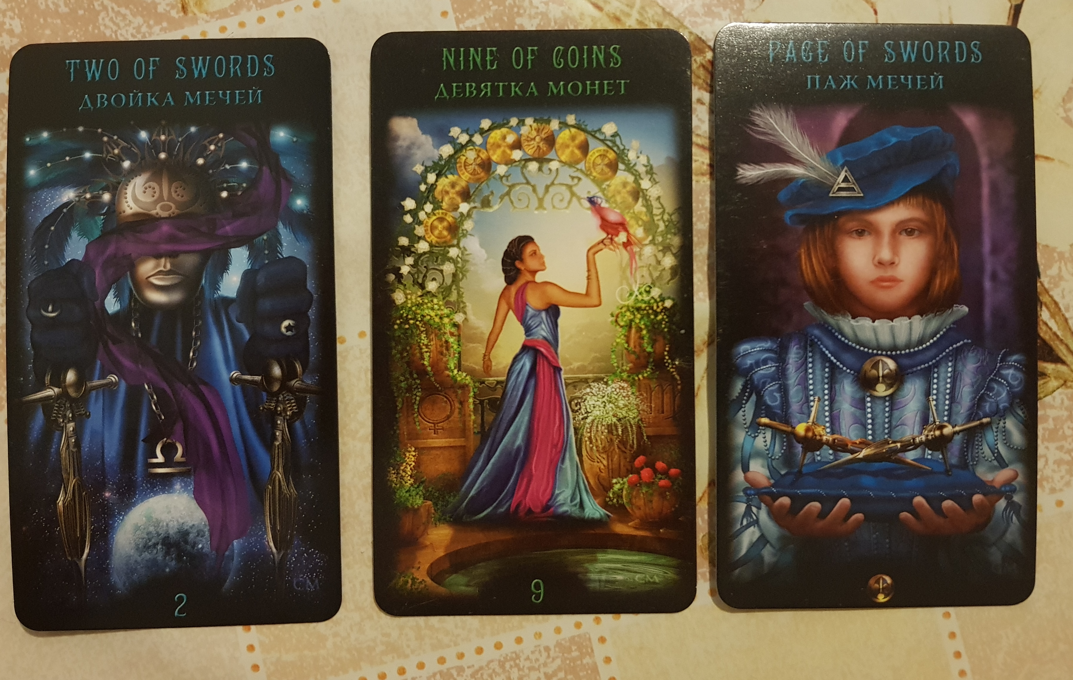 Двойка мечей - девятка пентаклей - паж мечей.