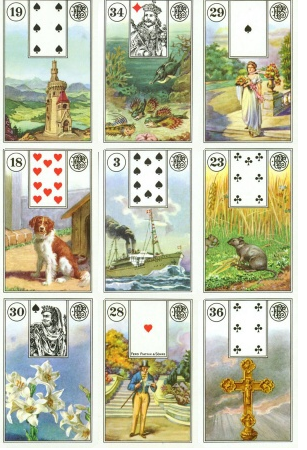 По первой вертикали думаю что будут расставлены некие точки над И с некоей дамой (змея), т.к. карта выпала рядом с картой М, то полагаю что жена это его (опять же по хк от змеи к лилиям и звездам).